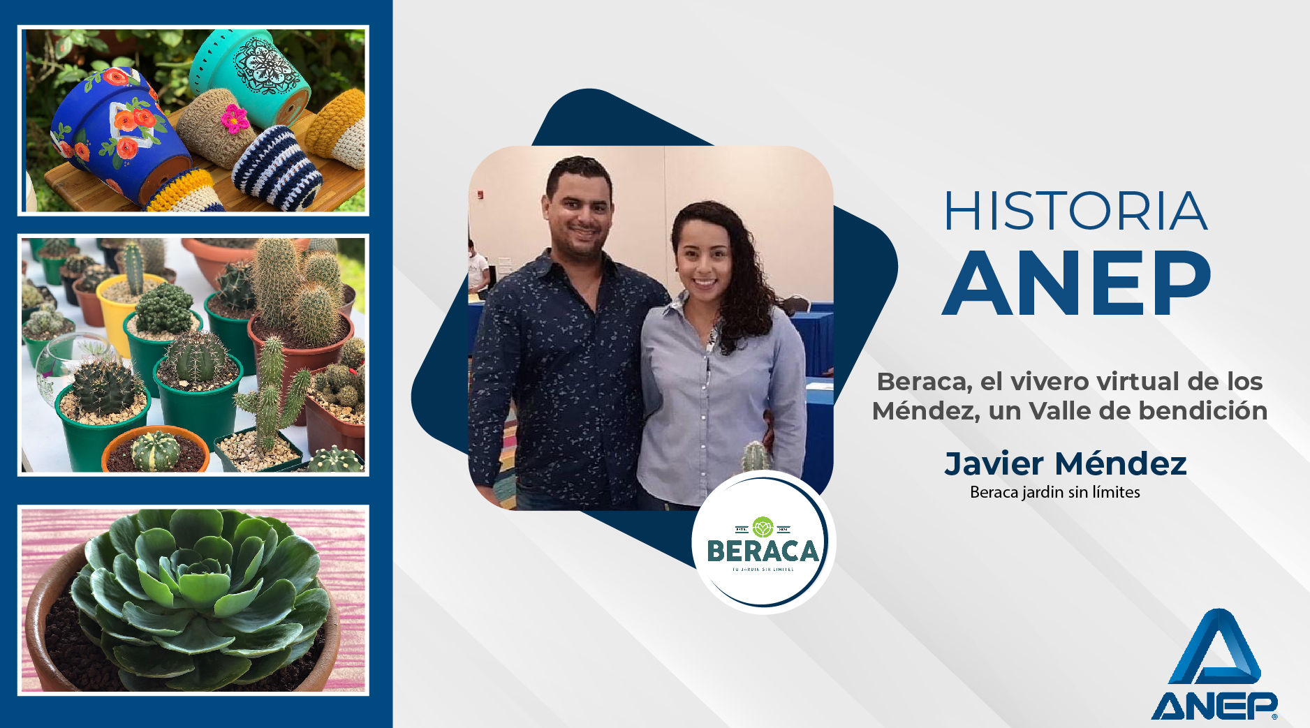 Javier Méndez es un fanático de las plantas y con ellas conquistó a su esposa Bessy, ambos crearon Beraca (Valle de Bendición), un vivero virtual que ofrece cactus, suculentas y todo tipo de plantas...
