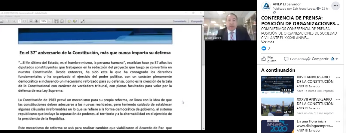 En el marco del aniversario 37 de la Constitución de la República, el abogado y gerente legal de la Asociación Nacional de la Empresa Privada, ANEP, Daniel Olmedo y el presidente de Centro de...