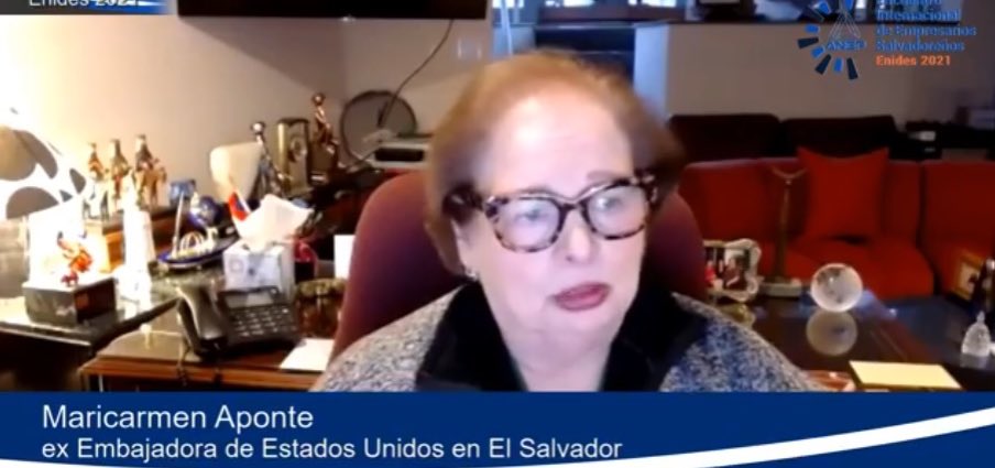 Invitada al Encuentro Internacional de Empresarios Salvadoreños ENIDES 2021, organizado por ANEP, Mari Carmen Aponte, exembajadora de Estados Unidos en El Salvador expresó el importante papel que el sector privado tiene para atraer la...