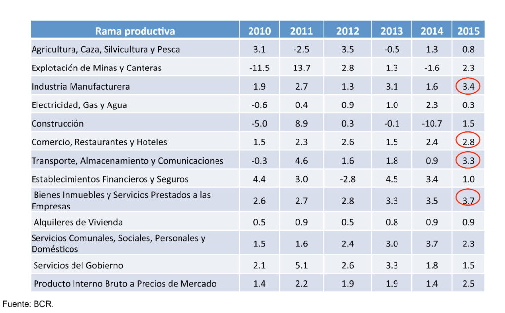 Crecimiento económico por rama productiva